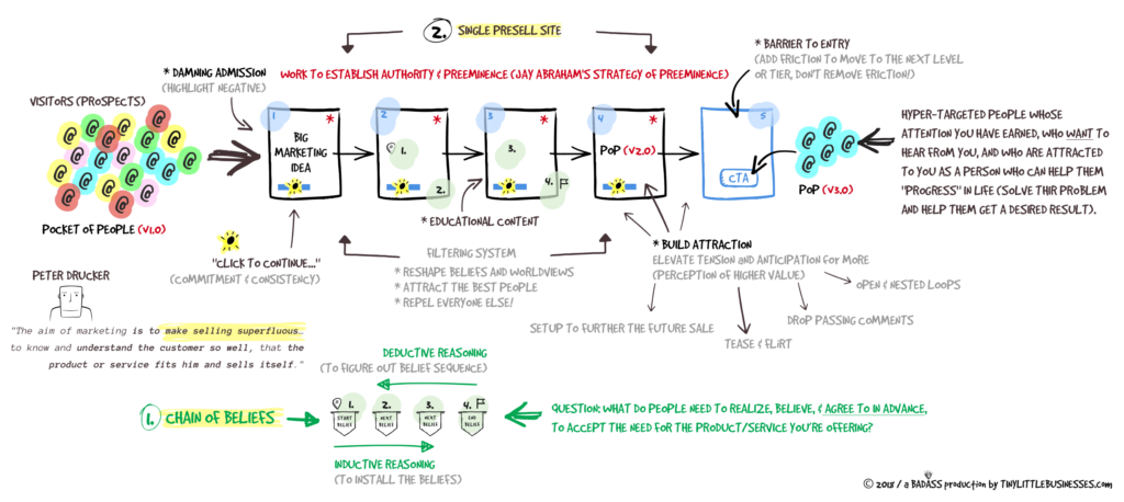 We chatted about preselling, about influence — the power to shift (reframe) beliefs through how we sequentially expose people to specific bits of marketing (the things we explicitly say and the things we imply).