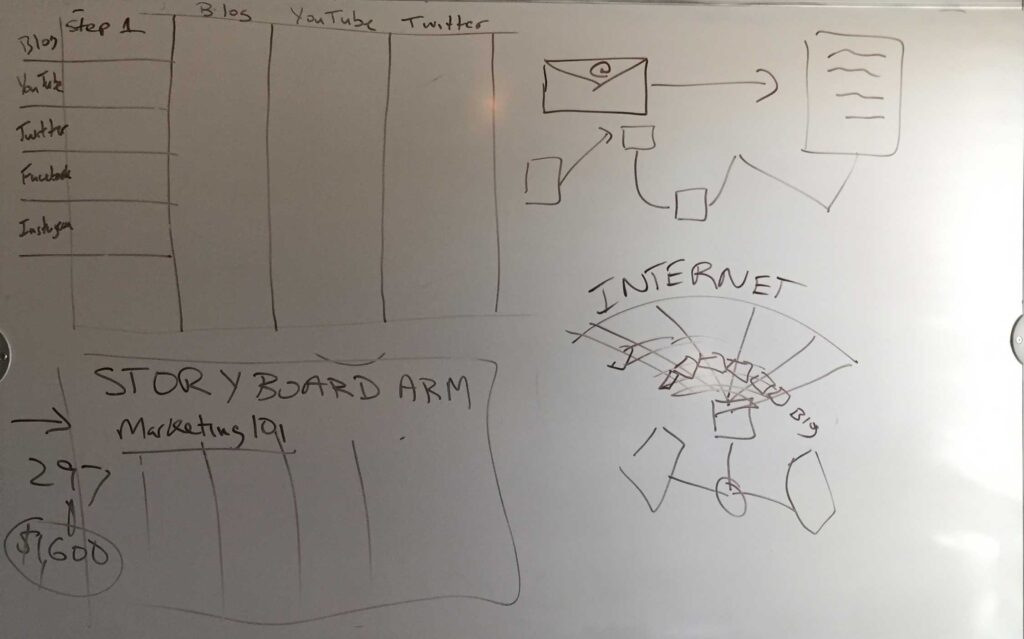 We then headed to his main office where he had a few big whiteboards. And we riffed through some scenarios: