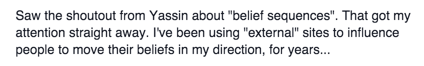 Then back in Gibraltar on January 26, I’m on a private forum reading a post when I see someone mentions “belief sequences.”